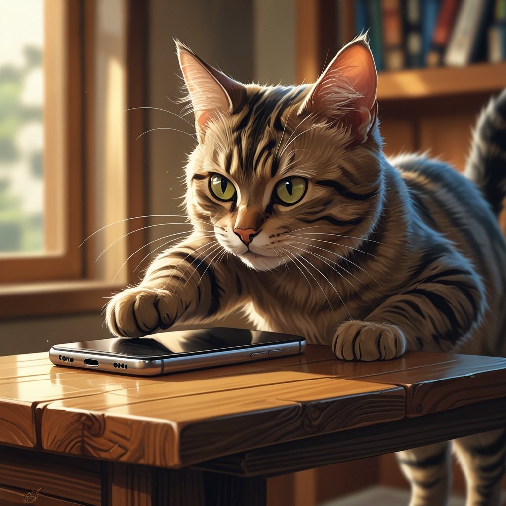 Your cat maintains direct eye contact while slowly pushing your phone off the table, as if to say “What are you going to do about it?”